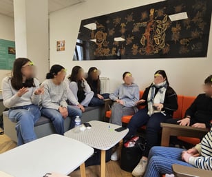 Cassandra, interprète en LSF, traduit les explications du guide lors de la visite d’Avignon, offrant ainsi une immersion culturelle accessible à tous les participants.